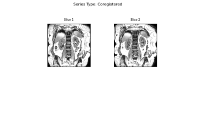 Examples# Tutorials# Fitting models without motion correction Fitting models without motion correction Coregistration options in mdreg Coregistration options in mdreg Multi-slice 2D registration Multi-slice 2D registration The effect of model selection The effect of model selection Datasets larger than RAM Datasets larger than RAM Defining a signal model Defining a signal model Pairwise coregistration API Pairwise coregistration API Groupwise coregistration API Groupwise coregistration API Use cases# A collection of real-world applciations of the mdreg package. Multi-slice MOLLI T1-mapping in the kidney Multi-slice MOLLI T1-mapping in the kidney 3D DCE-MRI in the liver 3D DCE-MRI in the liver 3D Variable Flip Angle (Linear) 3D Variable Flip Angle (Linear) Gallery generated by Sphinx-Gallery